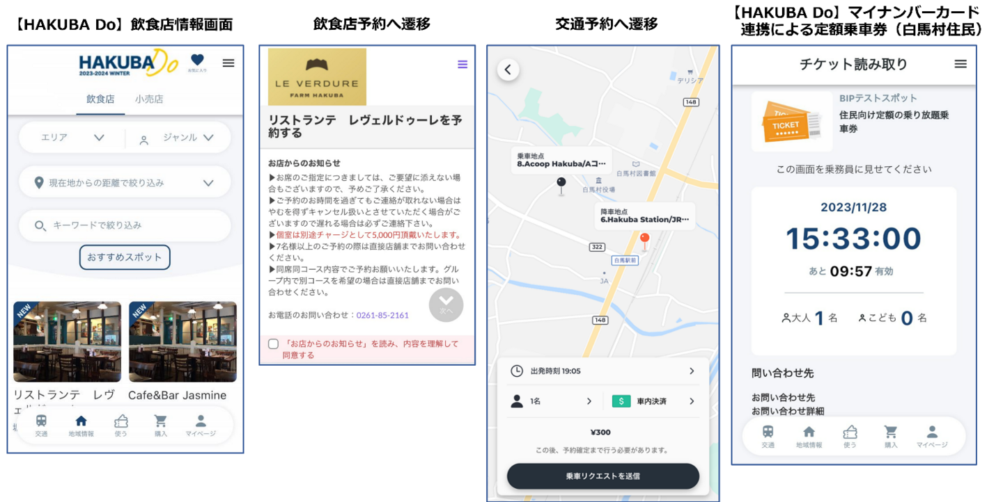2023年12月18日から運行を開始する「白馬ナイトデマンドタクシー」では、BIPROGYの「L-PASS」を活用した住民•観光客向けプラットフォームアプリ「HAKUBA DO」を提供する。