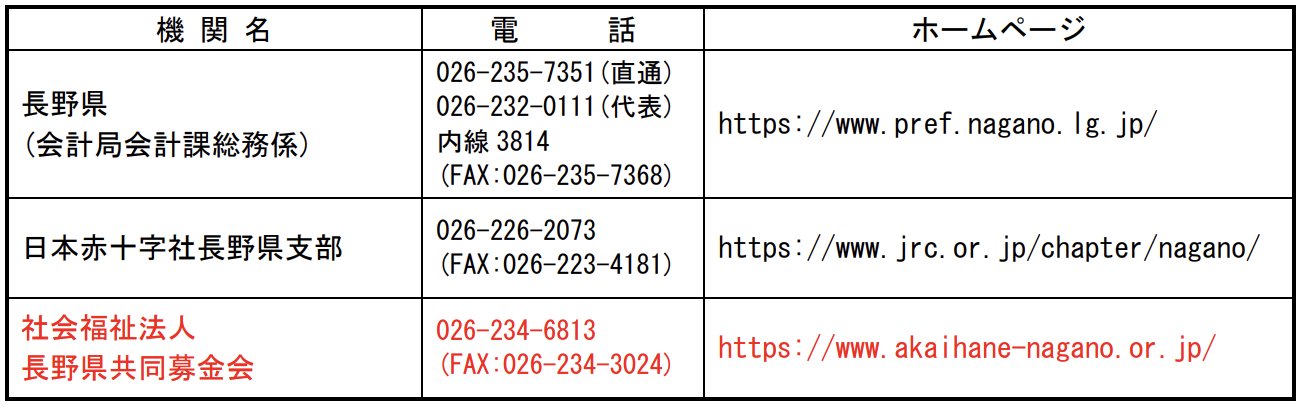 この件のお問い合わせは県会計局 会計課総務係 (担当)宿岩、牧島まで(電話026-235-7351<直通> 026-232-0111<代表>内線3814 FAX026-235-7368 メール kaikei@pref.nagano.lg.jp)。