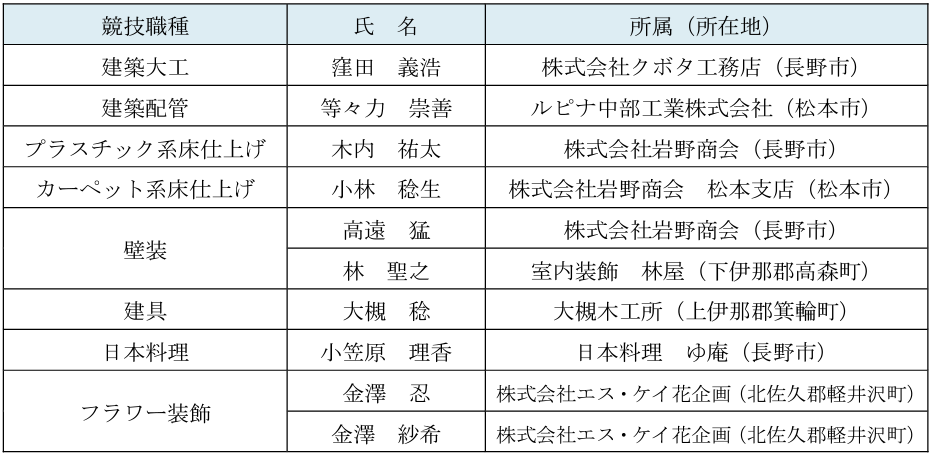 2月23日(金)から26日(月)に福岡県等で開催される「第32回技能グランプリ」に長野県から10名の選手が出場し、技能の日本一を競う。