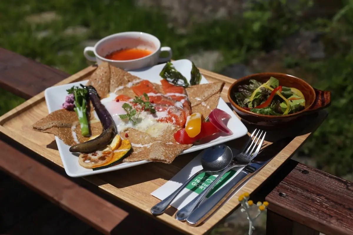 朝食:信州サーモンと白馬産の野菜をふんだんに使った蕎麦粉ガレット