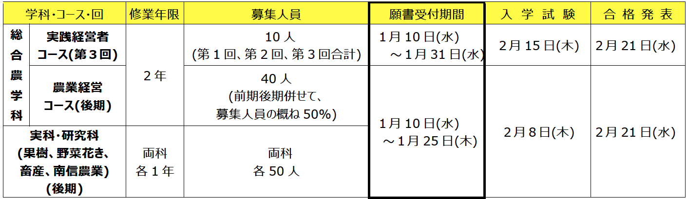 目指せ信州農業のトップランナー! 県農業大学校実践経営者コース入学試験(第3回) 及び一般入学試験(後期日程)の願書受付開始に |