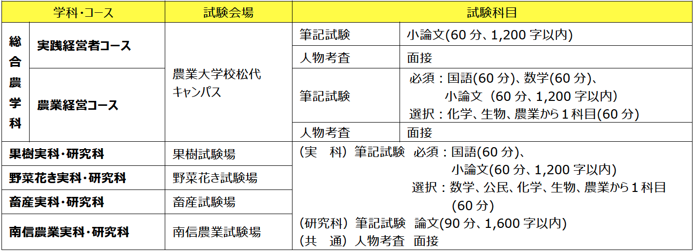 ※30年度入試詳細はこちら(http://www.pref.nagano.lg.jp/nogyodai/boshu/index.html))主な変更点は別紙のとおりだ。