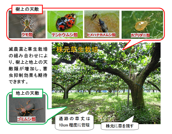 図1 農業に有用な生物多様性を保全するナシ圃場の管理技術の例