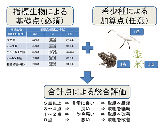 図2 水田における生物多様性の評価方法(関東地方の例)