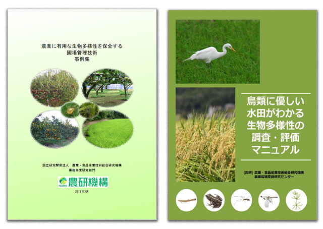 (左)農業に有用な生物多様性を保全する圃場管理技術事例集