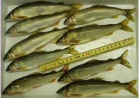 県水産試験場では徹底した衛生管理により、病気を持たない健康なアユの稚魚を年間約80万尾生産している。昨年、試験場生まれの県産アユ稚魚と放流用として一般的な琵琶湖産のアユ稚魚を同じ河川に放流し、その成長について調査した。その結果、解禁後に釣ったアユの全長に差はなく、県産アユは琵琶湖産と同等の成長を期待できることがわかった。