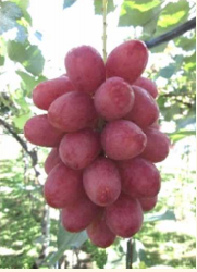 甘味が強く皮ごと食べられる赤色ぶどう新品種 「ブドウ⻑果 11」を育成した。成熟期は9月下旬(「シャイ ンマスカット」とほぼ同時期)、大粒で果皮の着色が良い。高い糖度(22~23%)、ほのかなマスカット香である。
