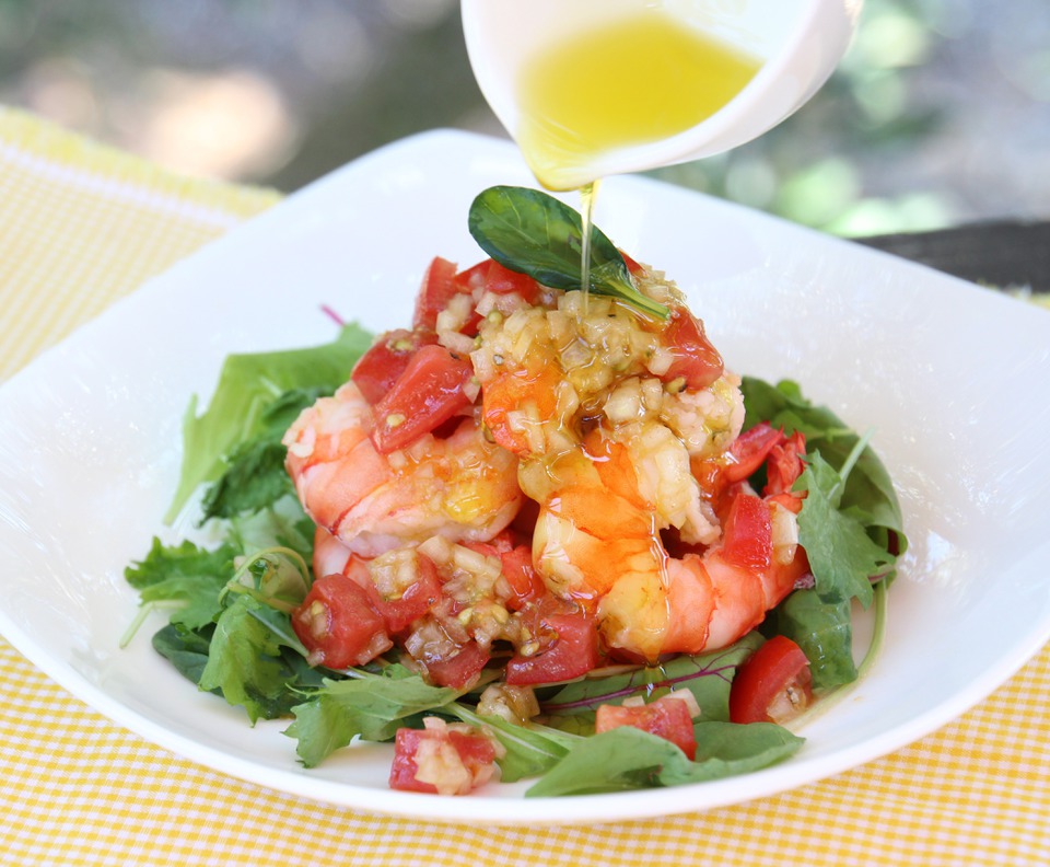 3. 味わいはまろやか、香りはもぎたて新鮮なレモンそのもの。その香りと鮮度を生かして“かけるオリーブオイル”としてトマトや魚介に。