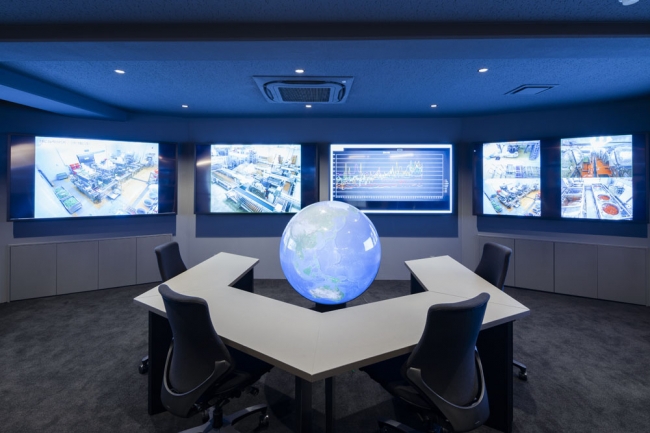 同社の商品および世界各地に委託する原料種子の生育状況には、日々の気象はもちろん、長期的な気候変動が大きく影響する。そこで世界的な気候変動を把握し、栽培への影響をいち早く察知したり、海外展開先や原料種子の産地を選定したりするためのツールとして、ワールドコントロールセンターに地球儀型気象情報ディスプレイを導入した。このディスプレイによって、リアルタイムの雲の動きや天気図、台風•津波の発生過程、長期的な気候変動などの世界の気象データを可視化することが出来る。