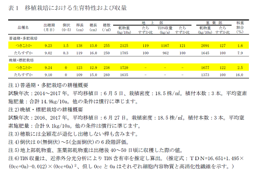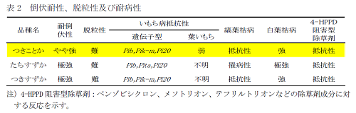 - 縞葉枯病に抵抗性で、縞葉枯病が発生しやすい地域でも栽培できます(表2)。