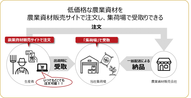 ・一般市場価格より割安での購入が可能(同社と資材販売会社との直接取引による中間コストの削減、同社集荷場への一括配送による物流コストの圧縮により低価格での販売が実現)