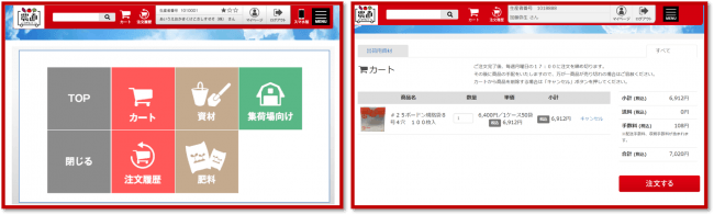 ■「農業資材販売サイト」の画面