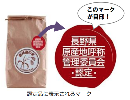 長野県産の「日本酒」「ワイン」「米」などのうち、特に味と品質が優れたものを認定する制度。「米」については農薬と化学肥料の使用を厳しく制限して栽培され、さらに米の食味の専門家による官能審査(食味の審査)でその美味しさが認められた長野県産のものだけを認定している。