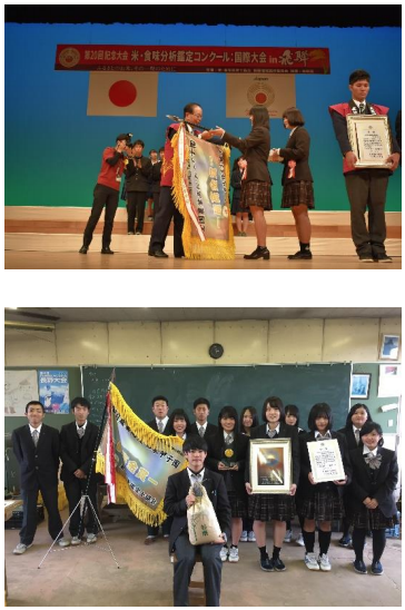 「全国農業高校お米甲子園」は、実習田で生徒が生産したお米の食味を競うコンテストで、食味計や穀粒判別機による玄米分析結果、味度計による数値測定、審査員の試食結果をもとに米を評価する大会だ。県内高校では初の最高金賞受賞となった。