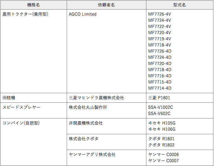 平成30年度農業機械安全性検査 合格機(第9次分)について(農研機構) 基準をクリアした安全性の高い農業機械 |