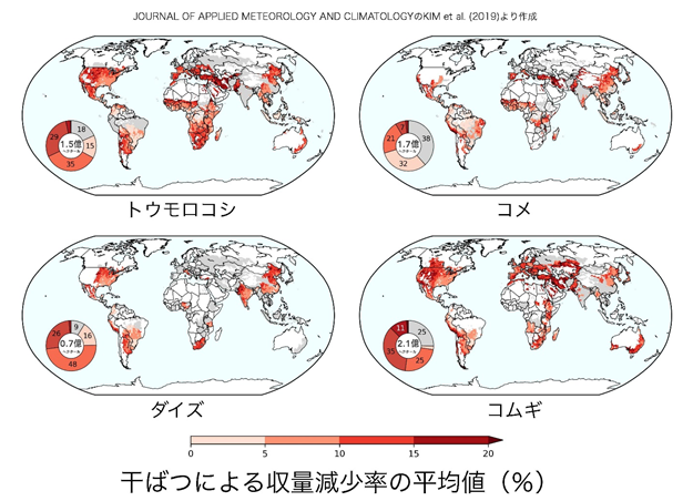 本成果により、過去の干ばつによる穀物生産の被害状況の把握や今後の被害量の推定が可能となり、国際的な干ばつに対する支援及び対策並びに日本の穀物の安定的な輸入•需給に役立つ。この研究成果はアメリカ気象学会誌「Journal of Applied Meteorology and Climatology」に掲載された(https://doi.org/10.1175/JAMC-D-18-0174.1)。関連情報:予算:環境研究総合推進費S-14「気候変動の緩和策と適応策の統合的戦略研究」(2015-現在)