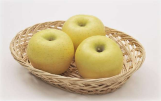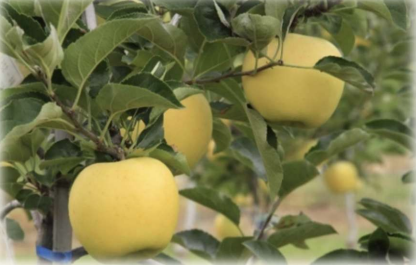 県オリジナル品種の「シナノゴールド」 金色に輝くほどきれいな黄色いりんご 出荷始まる(10月中旬~2月下旬) |