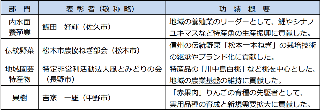長野県園芸特産振興展品評会表彰式及び 長野県園芸特産業関係功労者表彰式を 11月20日に開催 |