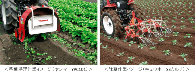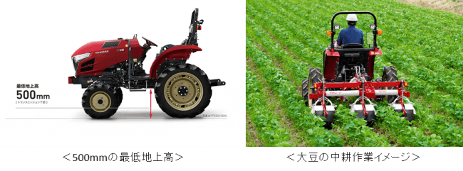 日本国内では、大豆や玉ねぎ、キャベツなどの野菜への転作により、稲作との複合農家が今後ますます増加すると予測されている。また、畑作の管理作業に使われている乗用管理機と比べ、より多くの作業に対応可能なハイクリアランストラクターへのニーズが高まっている。このような要望に応えるため、作物を傷めずに、中耕、除草作業や掘取り作業などを安心して行える「YT2シリーズ ハイクリアランス仕様」を開発し、畑作農家の管理作業効率化を実現した。