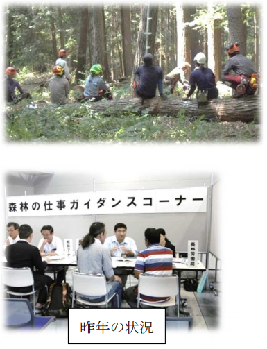 新たな林業の担い手の就業を促進するため「林業共同就職説明会」が開催される。また「林業への就業に関する質問•相談」にお答えする「森林(もり)の仕事ガイダンス」も同時開催される。