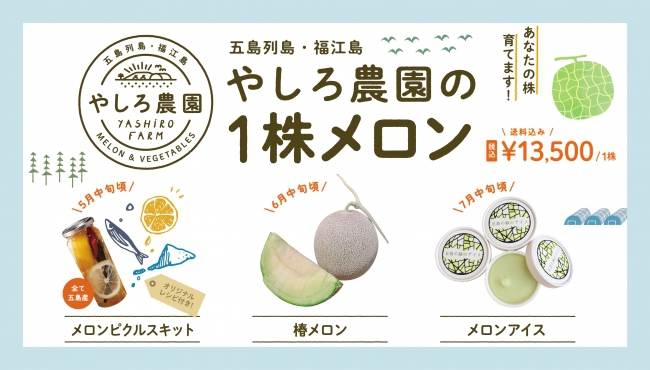 五島初メロンブランド「椿メロン」 苗から ピクルス、アイスなどお届け!1株で3回楽しめる 「やしろ農園 1株メロン」限定発売スタート |