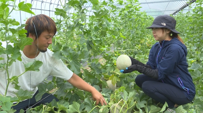 通常メロン は追熟を考え早めに収穫をされることが多い作物の中、やしろ農園では収穫をギリギリまで待ち畑で糖度をあげる事にこだわり、一歩間違えたらヒビ割れに繋がり、商品価値を下げるリクスもある中、大切なこだわりとしている。