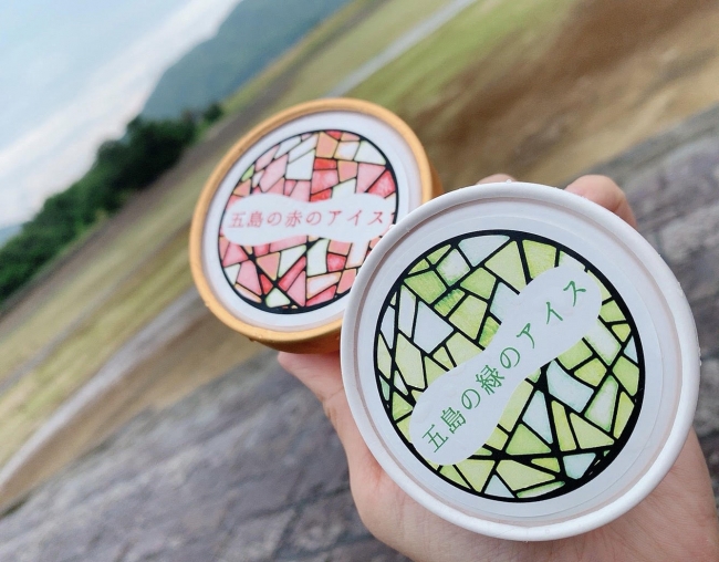 五島列島•福江島の観光名所でもある堂崎天主堂の隣にあるインスタグラマーにも人気のテイクアウト専門カフェ『BABY QOO (ベイビー クー)』でしか購入いただけなかった夏季限定の「五島のメロンアイス」を、「五島の緑のアイス」「五島の赤のアイス」それぞれ4点づつ、1株メロンのお届け製品として特別に用意した。