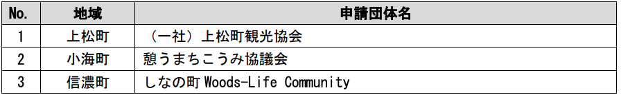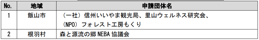 令和2年度林野庁補助事業「『森林サービス産業』創出•推進に向けた活動支援事業」の「モデル 地域」及び「準モデル地域」に全国16地域のうち5地域が長野県から選定された。