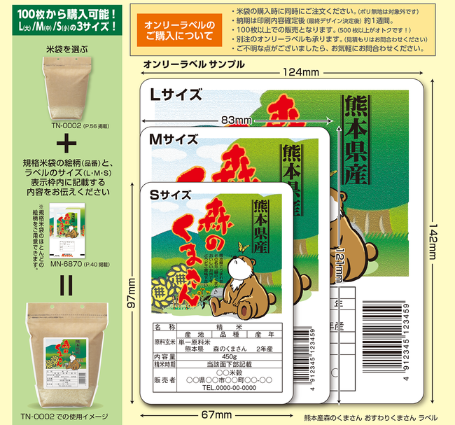 『オンリーラベル』のサイズ(L・M・S)規格米袋