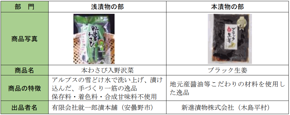審査員は東京家政大学大学院の宮尾客員教授、高崎健康福祉大学健康福祉学部の松岡教授ほかだ。主な賞は農林水産大臣賞、農林水産省食料産業局長賞、長野県知事賞他となっている。なお