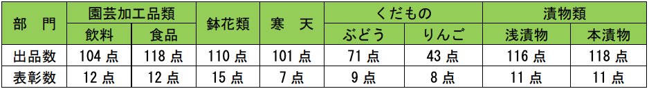 ※きのこ類の部は新型コロナウィルス感染症対策のため、開催中止となった。