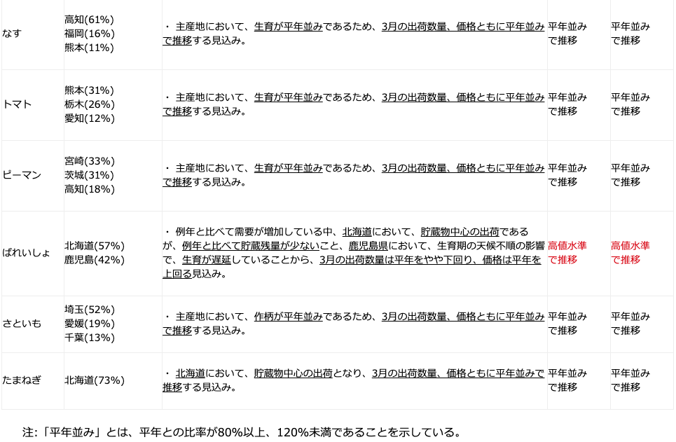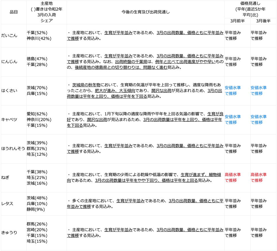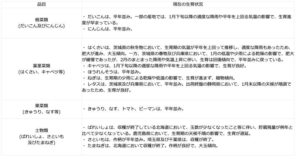 <現在の生育状況>今後の生育、出荷及び価格見通し