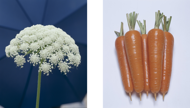 鮮やかなオレンジ色や赤色などの可食部とは違い、上品な白色の花を咲かせる。ニンジンは根菜のため、根を地中で肥大させたのち、しっかりと太い茎を地上部に伸ばし、花を咲かせる。花を咲かせると可食部は硬くなるため、ニンジンとしての商品価値はなくなる。そのため、ニンジン畑でも花を見ることはめったにない。