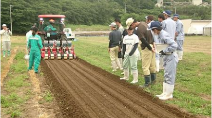 農業機械メーカーとのコラボ企画 農業大学校で畝立てと大豆播種を同時に行う 最新農業機械の操作実技講座を開催 |