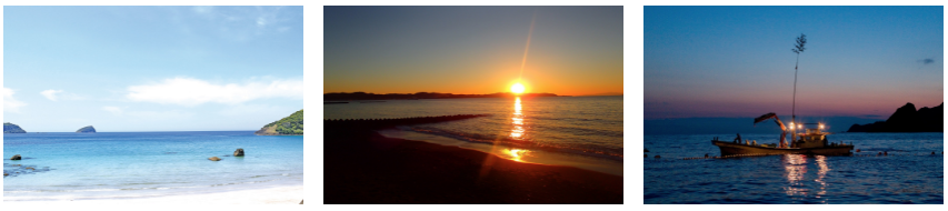 きれいな海、青い空。夕日や夜の漁火など漁村には息をのむ絶景があふれている。