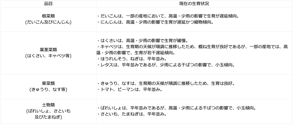 <現在の生育状況>今後の生育、出荷及び価格見通し