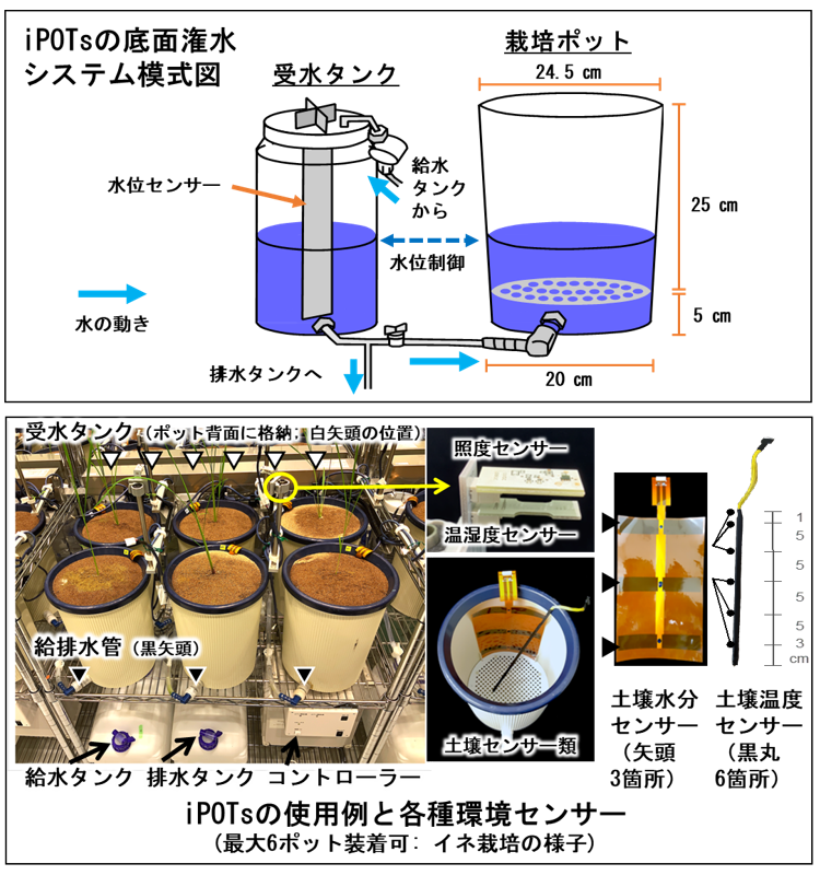 今回、IoT技術とセンサー技術を融合させることで、屋内環境下で土壌の水環境を自動制御できるポット・システム「iPOTs(Internet of Things-based pot system controlling optional treatment of soil water condition for plant phenotyping under drought stress)」を開発した。