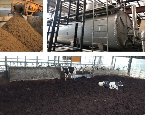 糞尿処理方法:ERSを使用して、1日あたり25トンの家畜糞尿を殺菌•発酵•乾燥して堆肥化処理し、再生敷料として使用する。