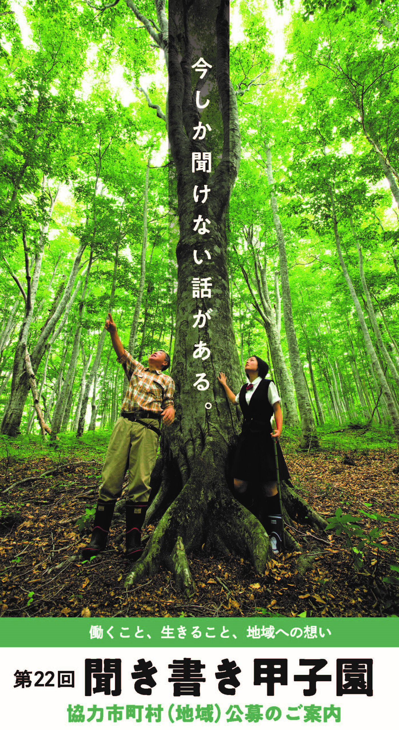 平成14年度からスタートしたこの取り組みには、これまで約1900人の高校生が参加し、高校卒業後は農山漁村へのI・U ターンも含め、さまざまな場所で活躍している。今年で21回目となる「聞き書き甲子園」の開催に当たり、参加する高校生を募集する。また、第22回の開催に向け、本取り組みに賛同し、名人の推薦と高校生の「聞き書き」取材の受け入れにご協力いただける市町村を公募する。