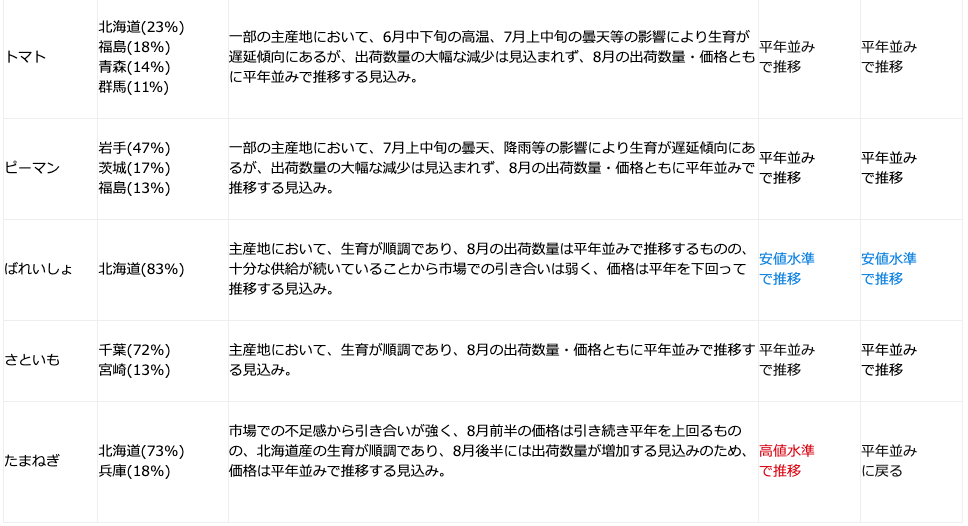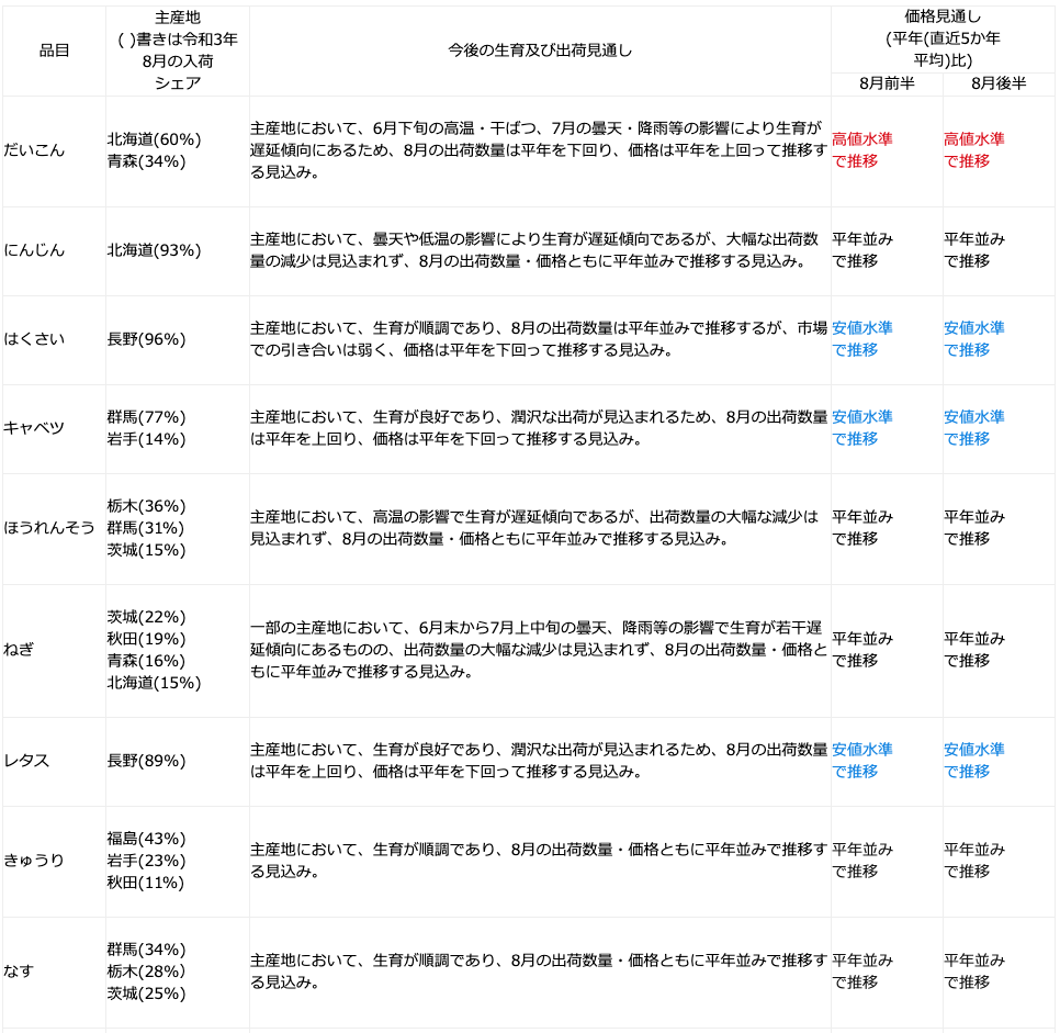 野菜の生育状況及び価格見通し(令和4年8月)について