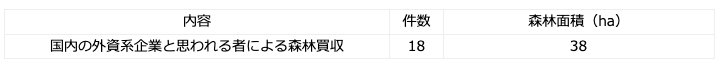 居住地が海外にある外国法人又は外国人と思われる者による森林取得の事例の集計(PDF : 109KB)(平成18年~令和3年における森林取得の事例)