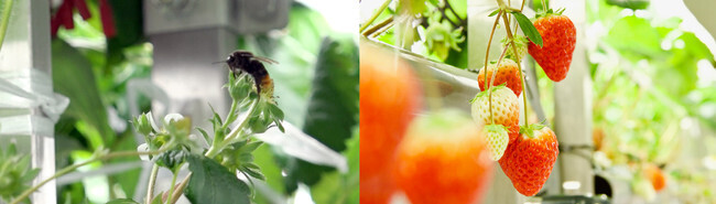 農薬使用率の高い「いちご」の栽培において、スプレッドは閉鎖型かつ人工光を用いる植物工場でのいちごの農薬不使用栽培を成功させ、その量産化技術を2021年に確立した。いちごの受粉に必要なミツバチを導入し、ミツバチが暮らしやすい環境を整えることで、実現が難しいと言われていたLED照明下での安定的な飛行と受粉を実現している。大規模栽培ノウハウや自動化技術を活用し、国内外でのビジネス開発を進め、安全で安心ないちごを普及させていく。