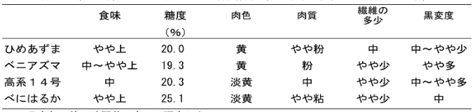 表2育成地(茨城県)における蒸しいもの品質特性(4か年平均値、2018年~2021年)