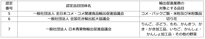 輸出促進法に基づき3団体を認定品目団体