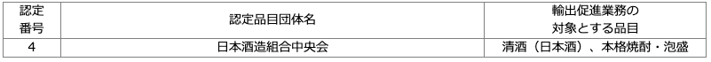 (農林水産物・食品輸出促進団体)として認定