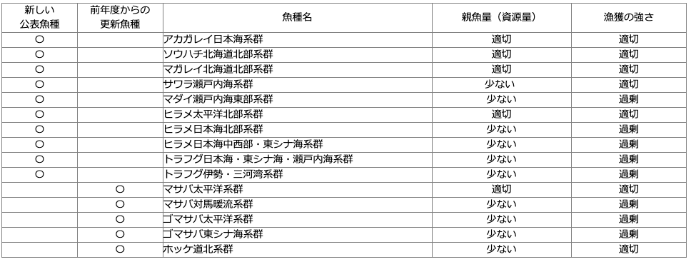 令和4年度我が国周辺水域の水産資源に関する評価結果公表(水産庁)