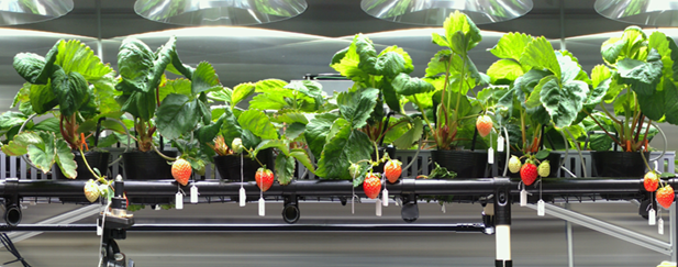 1)の実現に向け、市場規模の大きな施設野菜の一つであるイチゴの収穫日を高精度に予測し制御する技術を開発し、