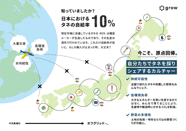 ですが、わたしたちが目指すところは、このgrowのプラットフォーム、growのテクノロジーを使って頂き、「たのしく育てて、たのしく食べる。」こと。たのしい事こそが持続可能であると考えておりますし、その循環の過程でかつて江戸時代では当たり前だったように種を採り、また育てるという行為が最もアースコンシャスだと思っています。