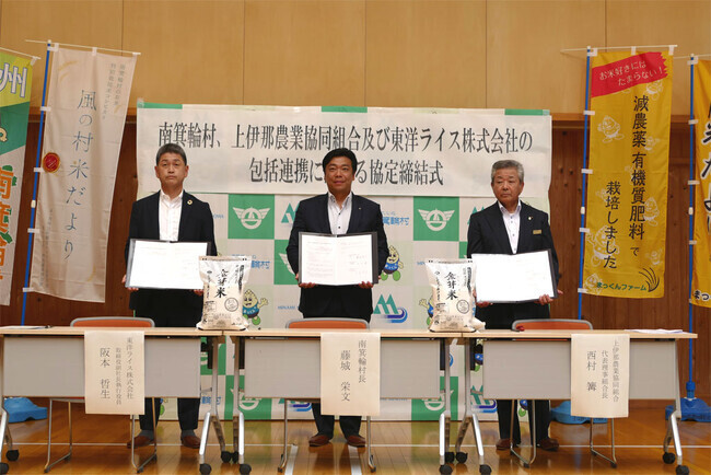 包括連携協定を締結、南箕輪村産100%の「金芽米 風の村