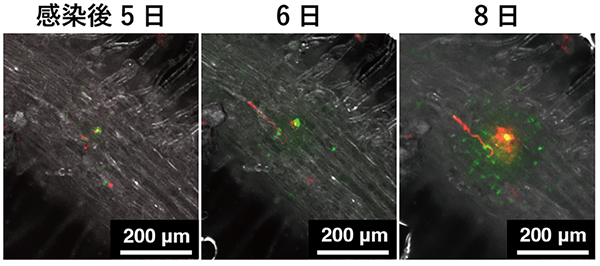 図3 2種類の根粒菌の感染動態の観察